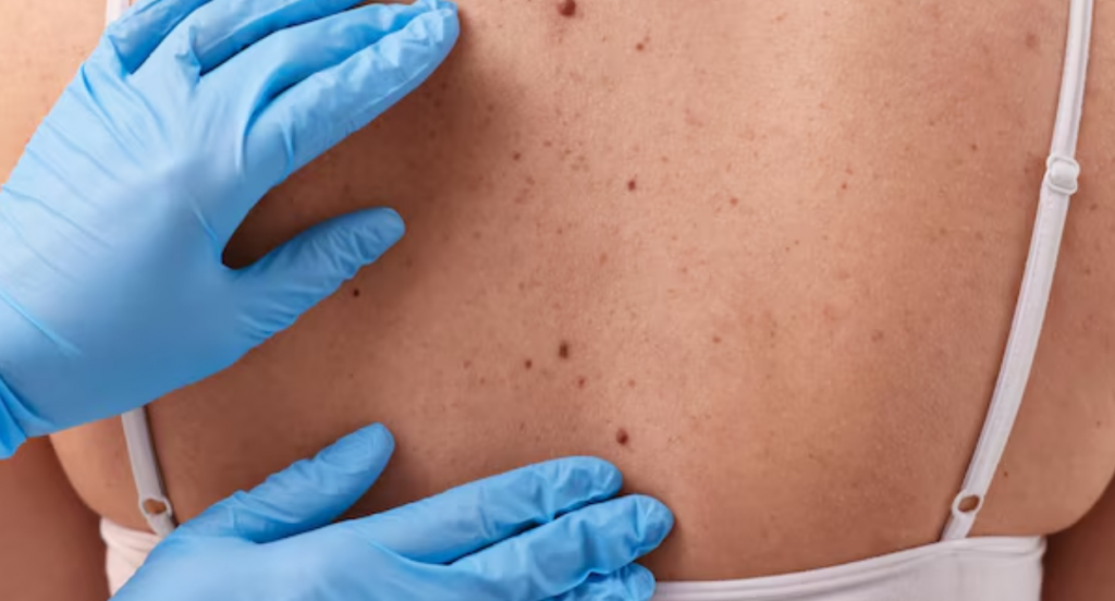 - Historial de nevus (lunares): Poseer un elevado número de lunares comunes o la presencia de nevus atípicos (displásicos) incrementa la probabilidad de desarrollar melanoma.