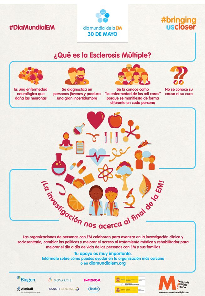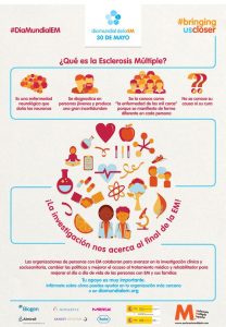 Hoy, día 30 de mayo, se celebra el Día Mundial de la Esclerosis Múltiple, que este año tiene como mensaje central la reivindicación de incrementar la investigación, tanto en el ámbito científico, como social, visibilizando esta enfermedad ante el resto de la sociedad y conectando a las personas afectadas con investigadores y colaboradores que hacen posibles los logros obtenidos hasta ahora.